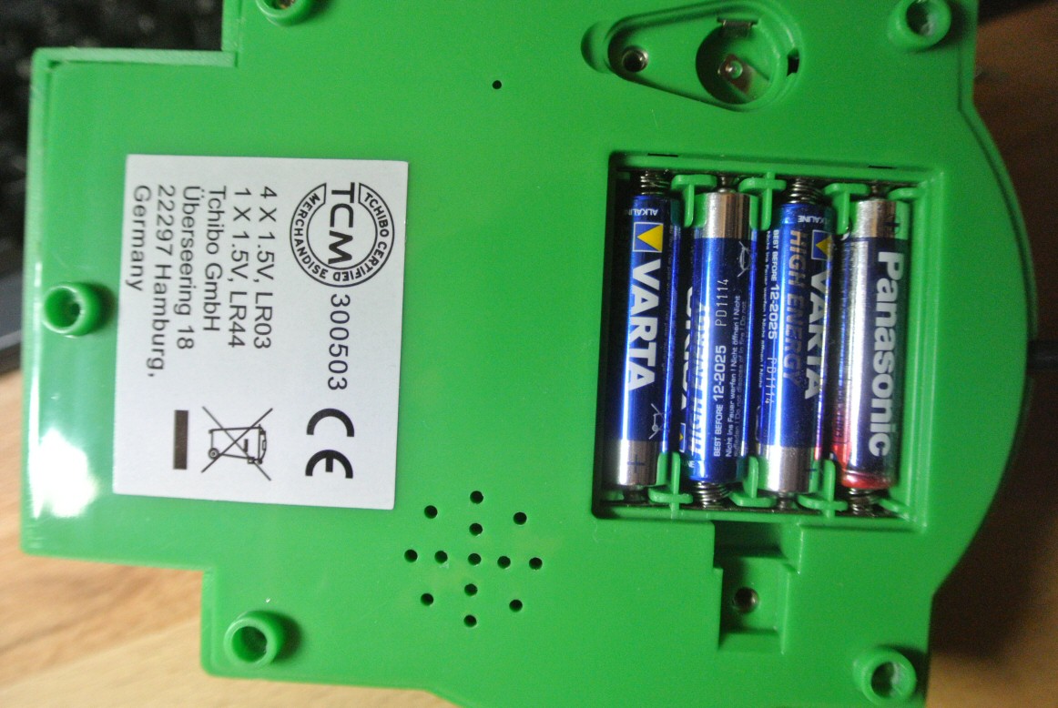 First look inside: The clock is completely indepedent from the alarm and UFO firing part. Perfect! The alarm board is even correctly labelled.
